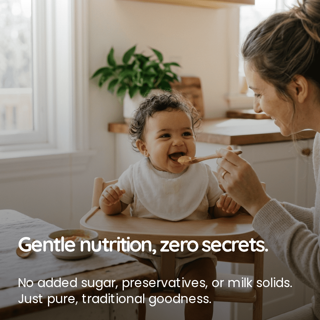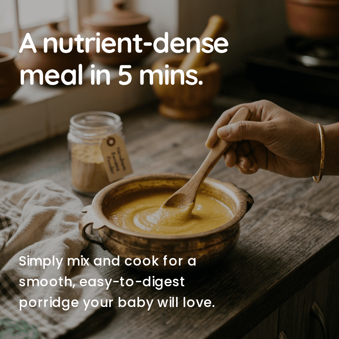 • Optional: Add a drop of Ghee or jaggery (for babies over 1 year) before serving warm.